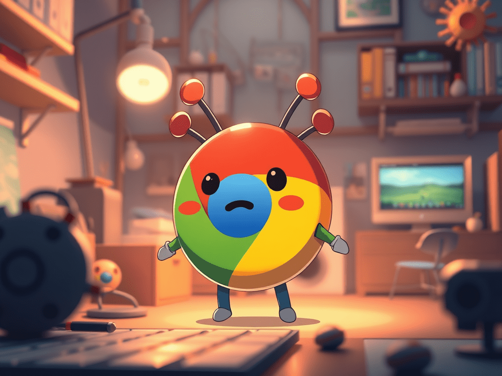 Este personaje tiene brazos, piernas y antenas que representan los colores del logo de Chrome.