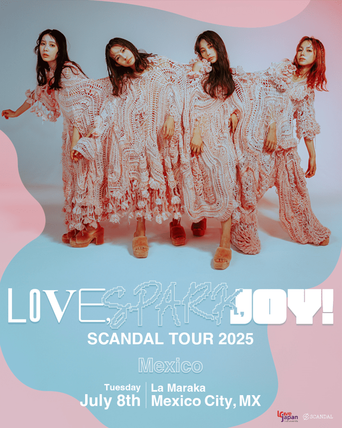 La espera ha terminado para los fans mexicanos de la icónica banda japonesa SCANDAL, ya que la agrupación llegará a la capital de nuestro país como parte de su gira internacional “LOVE, SPARK, JOY! SCANDAL TOUR 2025” y ofrecerá un espectáculo único el próximo 8 de julio en “La Maraka” centro de espectáculos.