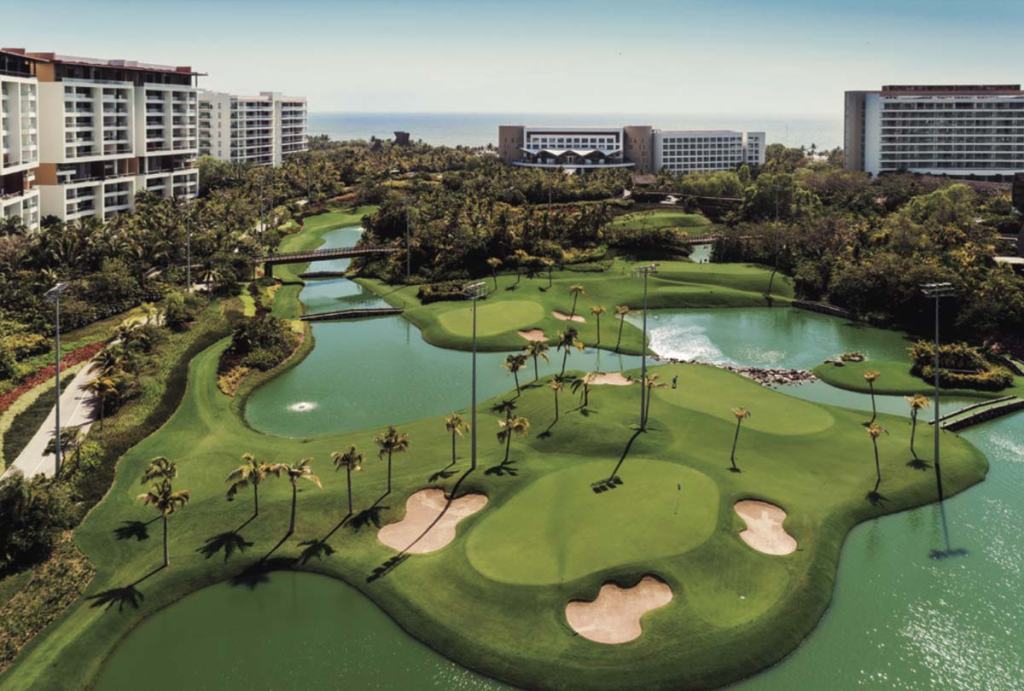 · La oferta de Vidanta Nuevo Nayarit: Incluye el desafiante Nayar Vidanta Golf, enclavado entre la selva y el mar; el campo Greg Norman Vidanta Golf, que presenta el puente colgante para carritos de golf más largo del mundo; y el innovador Lakes Vidanta Golf, con horario extendido hasta las 23:00 horas.