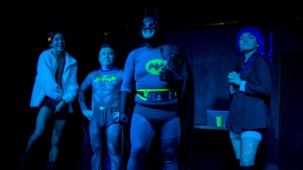 La obra destaca por su dinamismo escénico, diálogos rápidos y un humor que no pide permiso. Personajes como Superhumane, Chela Lane, RomE, La Mamba Negra y el cínico Bar-Man sostienen una narrativa que pasa de la risa al silencio incómodo en cuestión de segundos.