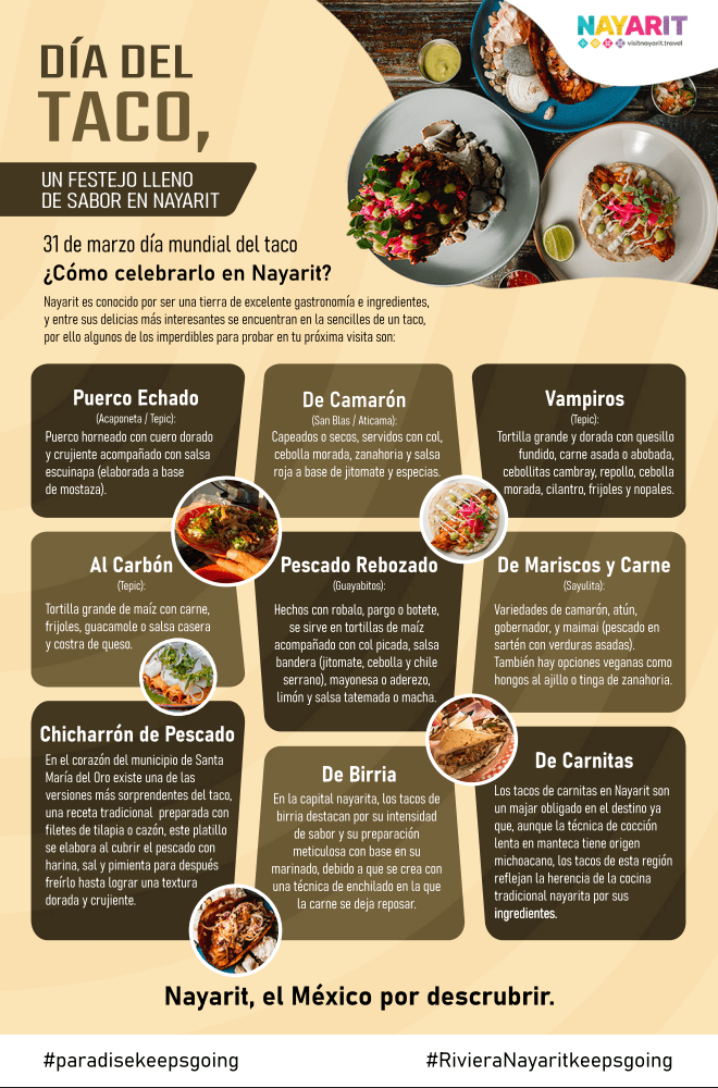 Una de las celebraciones más deliciosas se acerca y en el estado de Nayarit puedes vivirlo al máximo este próximo Día del Taco, un festejo lleno de sabor para disfrutar una de las creaciones culinarias más emblemáticas y queridas de México.